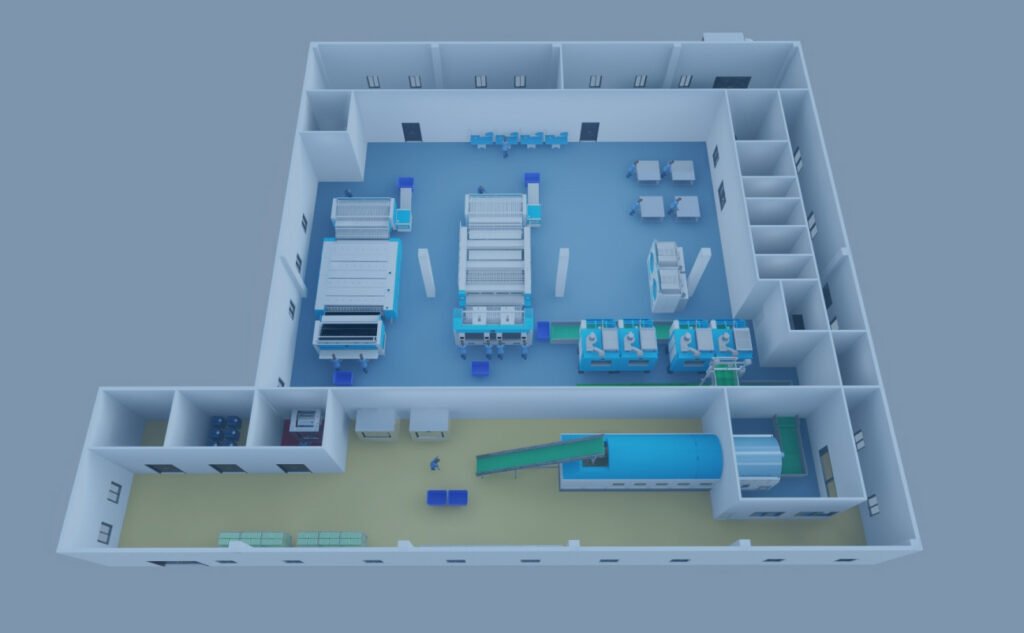 Anasys designs mid-sized labs with zoned layouts for efficient sample flow. We integrate modular chemistry/immunoassay analyzers, automated hematology systems, and dedicated spaces for microbiology and specialized testing. The configuration includes a robust LIS, strategic pre-analytical automation, and managed reagent inventory to ensure operational efficiency and quality.